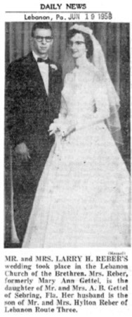 Larry and Mary Ann (Gettel) Reber wedding portrait June 1958