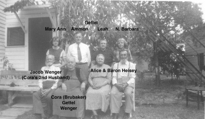 Back row: Leah, Barb Gettel, Alice Ruth Gingrich, Mary Ann Gettel, Cora Mae Geib, Ammon Gettel